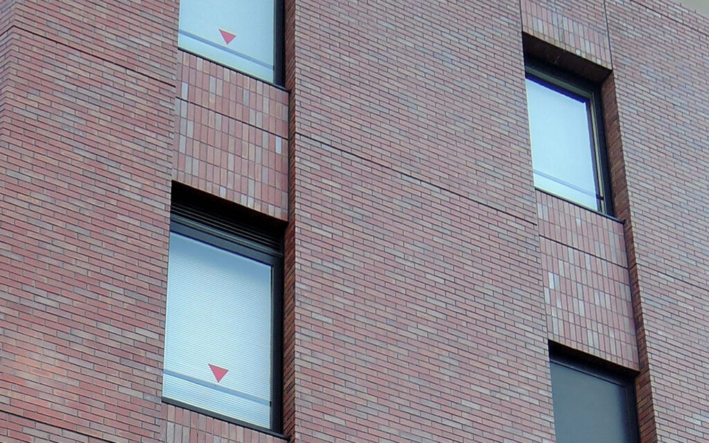The red-triangled sticker is to be on the window reachable from the fire ladder for emergency rescue. The equilateral triangle is 20cm wide, generally red in front (outside), and the backside (indoor side) is white with a notice printed on it.